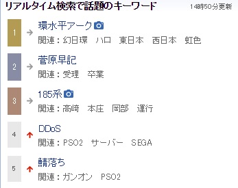 リアルタイム急上昇検索キーワード第5位にガンオン出てるやんけ!普段は落ちてもぜんぜん話題にならないのに何があったんだ