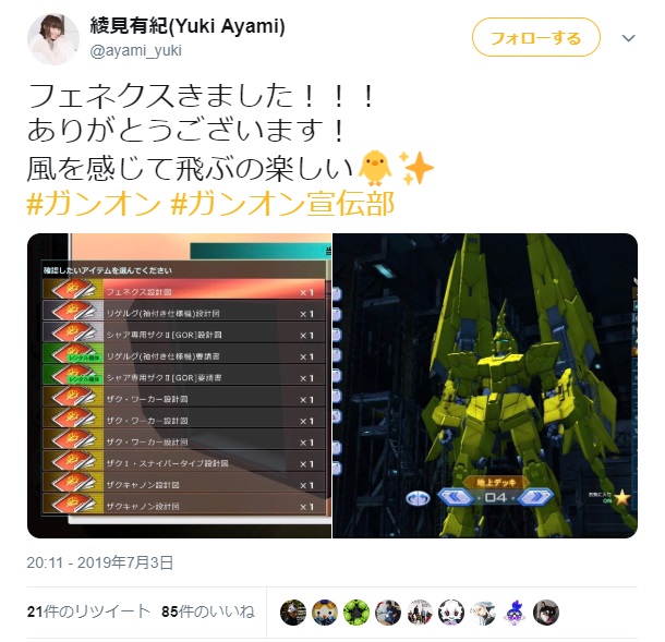 佐藤カールズがフェネクスを手に入れたから、次のアプデで鬼強化確定やな