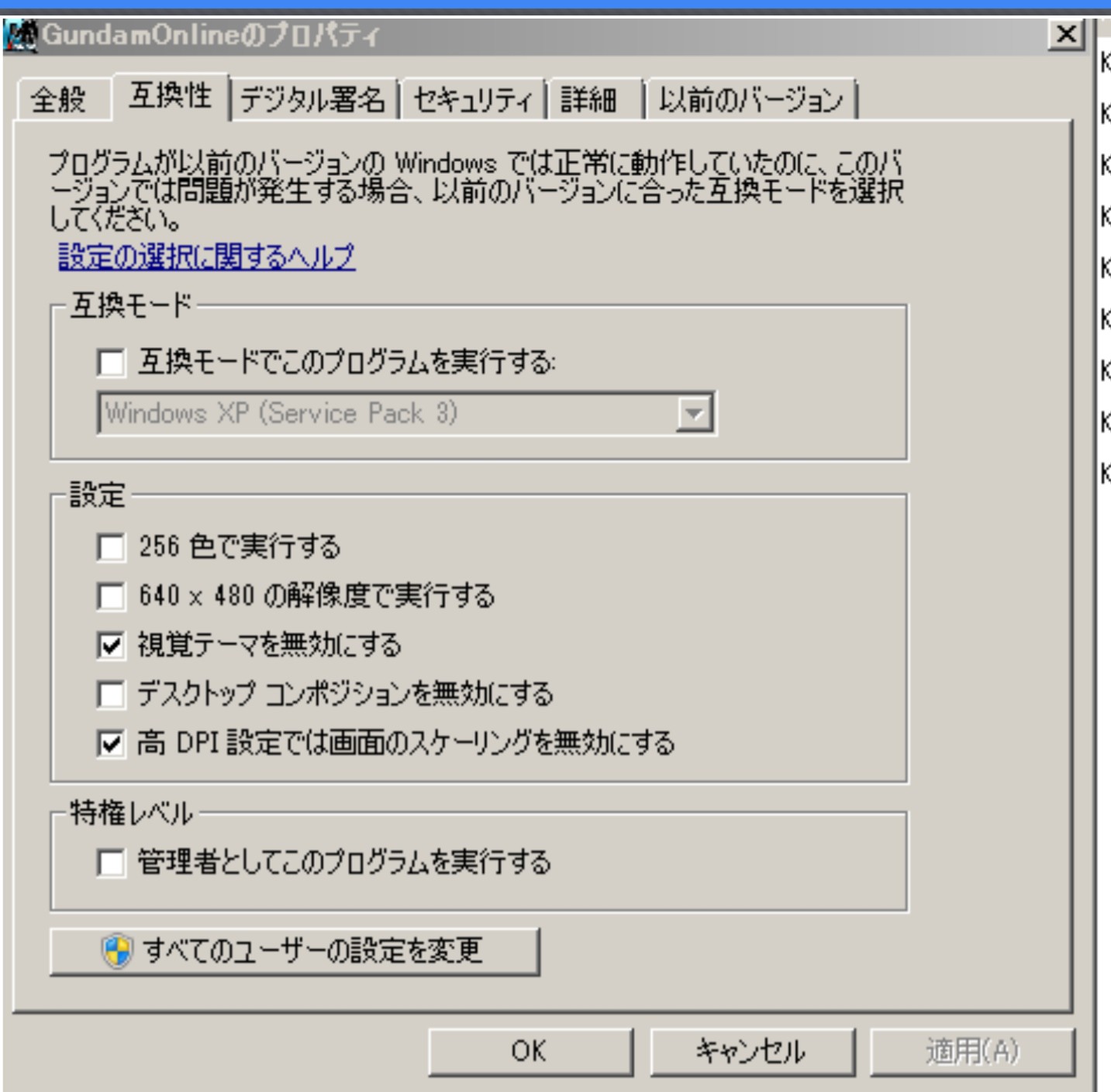 ガンオン重いって言う人はガンオンexeの所をプロパティ開いて互換性 設定 高DPIスケーリングを無効にするにチェック入れるだけで世界変わるよ。