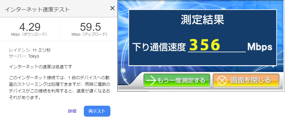ISP経由だと、この時間でもこの速度・・・地域IP網内部では、そこそこの速度。ISP腐ってるのか。
