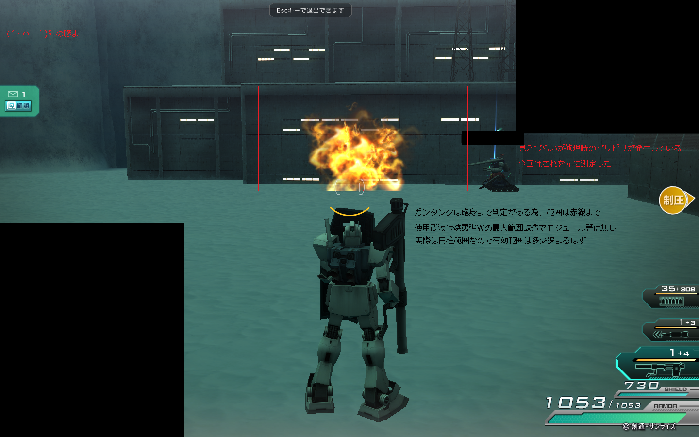 ほいよ、これ全盛期のガンタンクの具沢山アチアチ焼夷弾Wの範囲ね