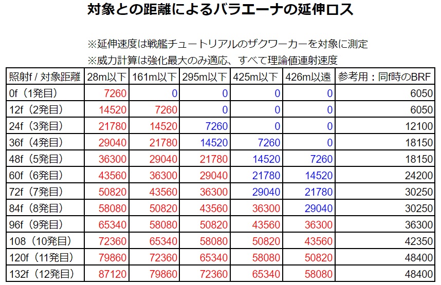 ちょい前に話題になってたゲロビの延伸火力ロスについての検証。敵機のサイズや角度で変化するしBRFの弾速も考慮していないので遠いと確定で火力がガタ落ちするという参考程度に。
