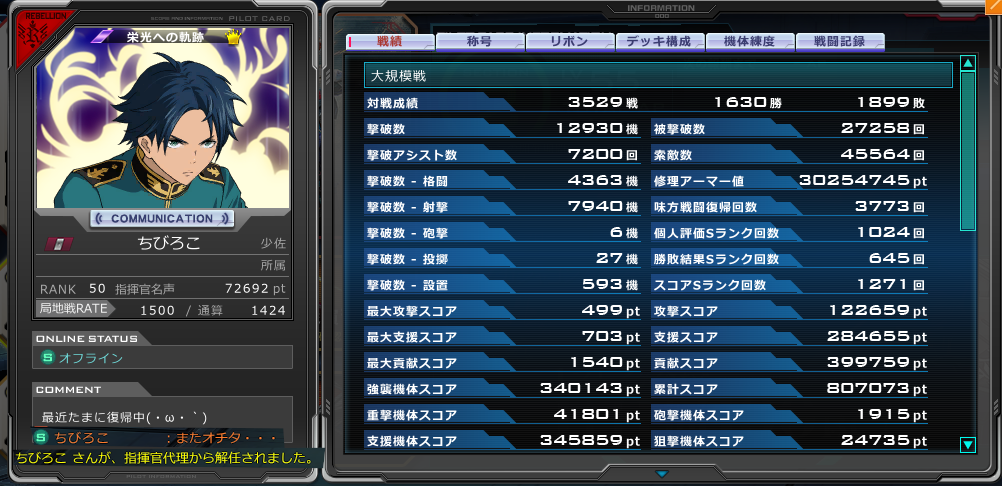 オーダーの指揮スパイ・・・ユベをうまく動かしオーダーの進行経路を露骨に作る 何度も落ちた落ちたといいながらROMってみれば補給もださず 指摘されれば逆切れ 終了後はオフライン これ両軍でよく見るんだが中身同じだろ