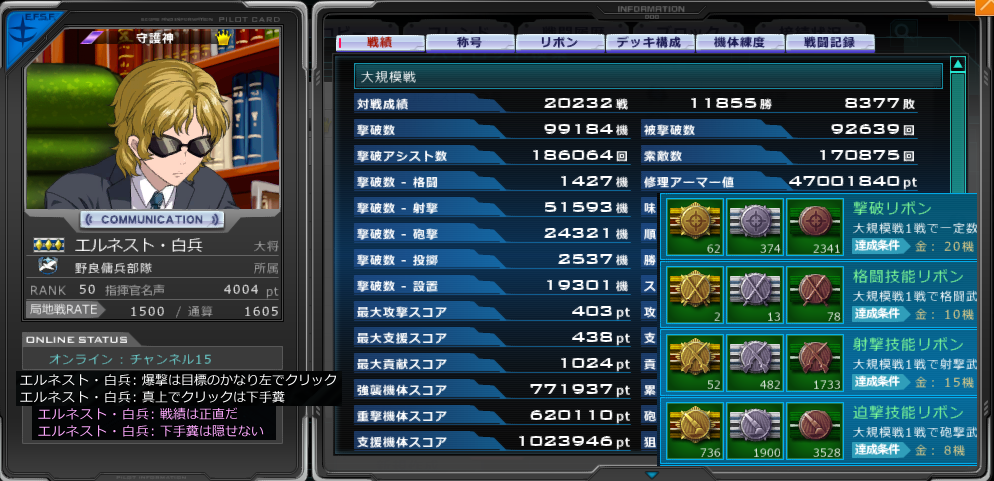 戦績は正直だ(射撃5万、砲撃2万、格闘0.1万)