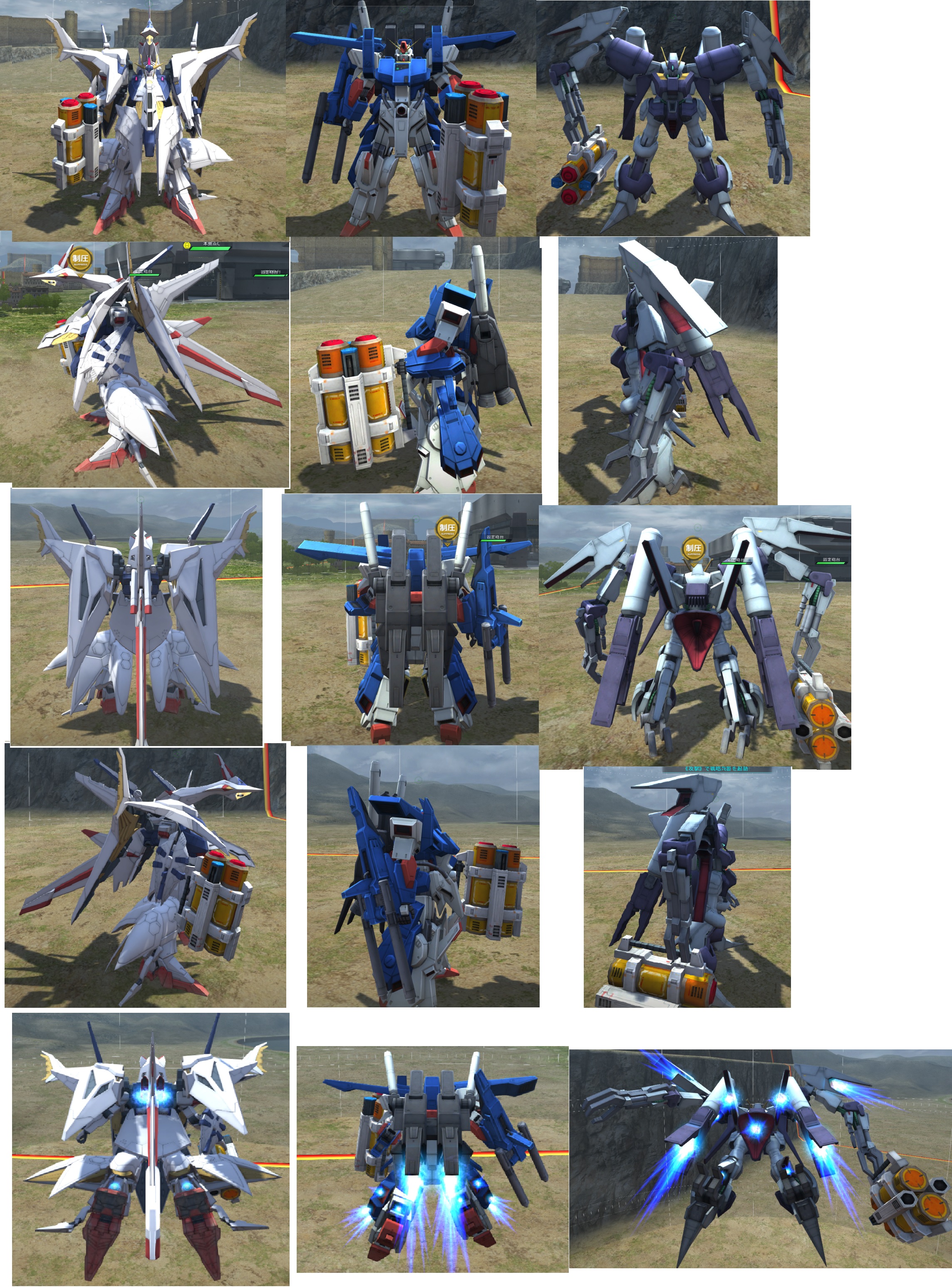 とりあえず核 持って並べてみた フルアーマーZZがコンパクトに見えるがフォルムの前に持つのが分かりやすい、バイアランカスタムは持ってるのがどの角度からでもモロに見える ペネロペは右と正面以外は図体で隠れる…のかなぁ(見づらくてスマン)