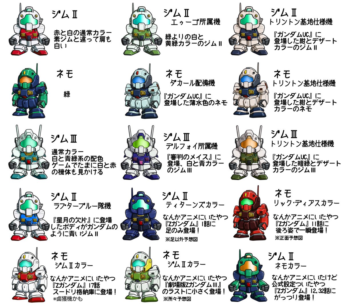 ガンオン運営はちょいと検索すれば出てくるこういうカラーバリエーションにしてほしかった・・結局10分で考えたようなやっつけ仕事のカラーで終わったな