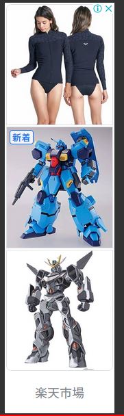毎回思うのだが、ここのPC版だと左縦のサイドバナー広告が意味が分からんのだが。。なぜガンプラと水着がセットなんだ?それともプラグスーツてきなものなのか?
