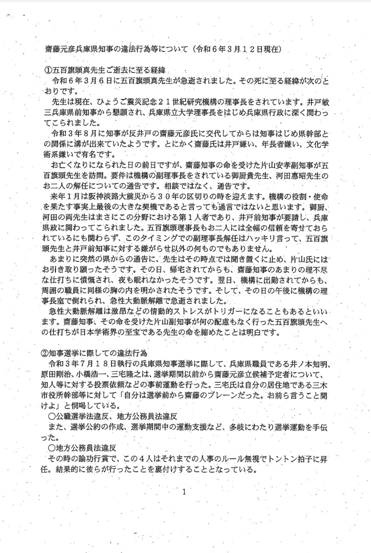 告発文だか怪文書だか知らないが、ちょっと検索すれば今は見つかるね。これ1ページ目