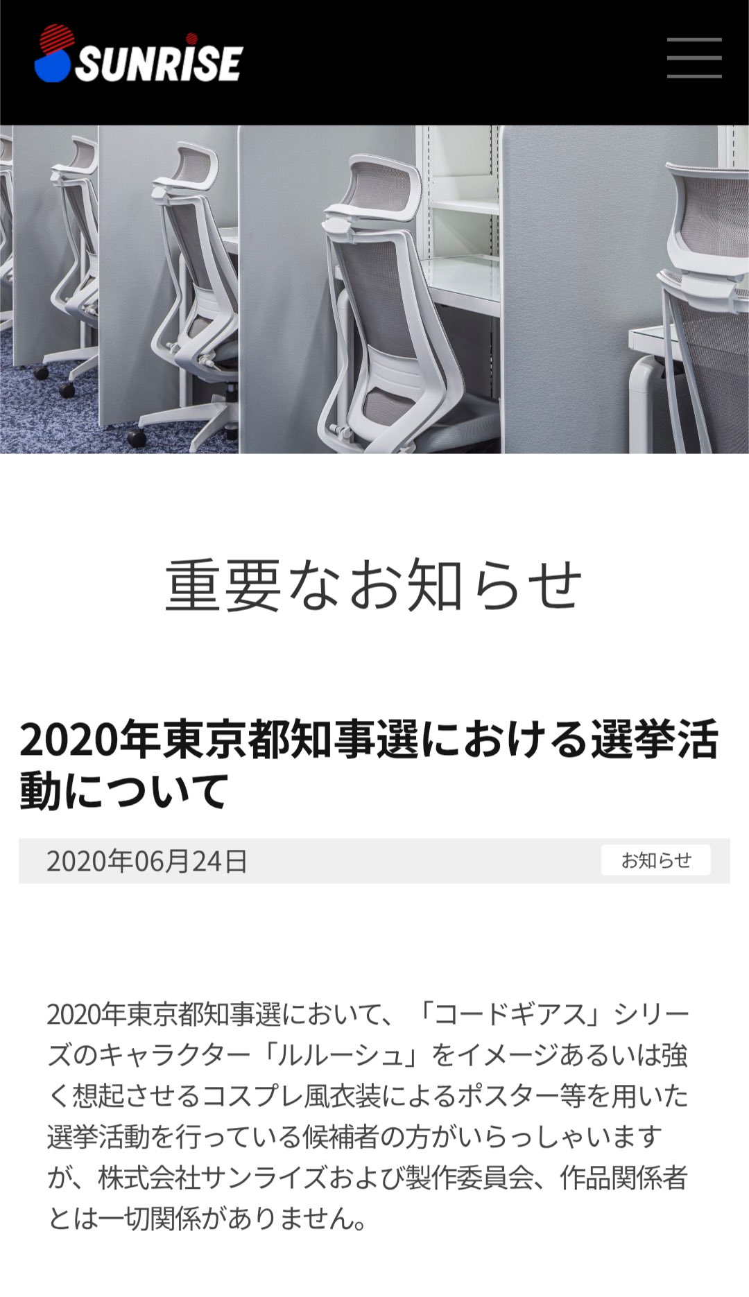 木主周辺はともかく、一貫した態度のサンライズは偉いと思ったが、国民民主宛ての声明は見つからない