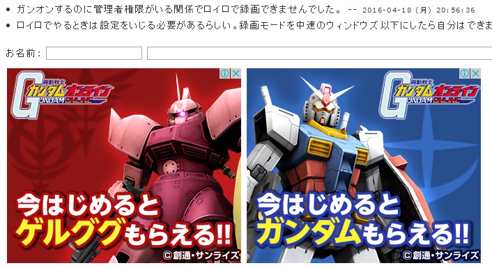 なんとなく見たら両方ガンオンのCMで、ゲルとガンダムが並んでたので投稿