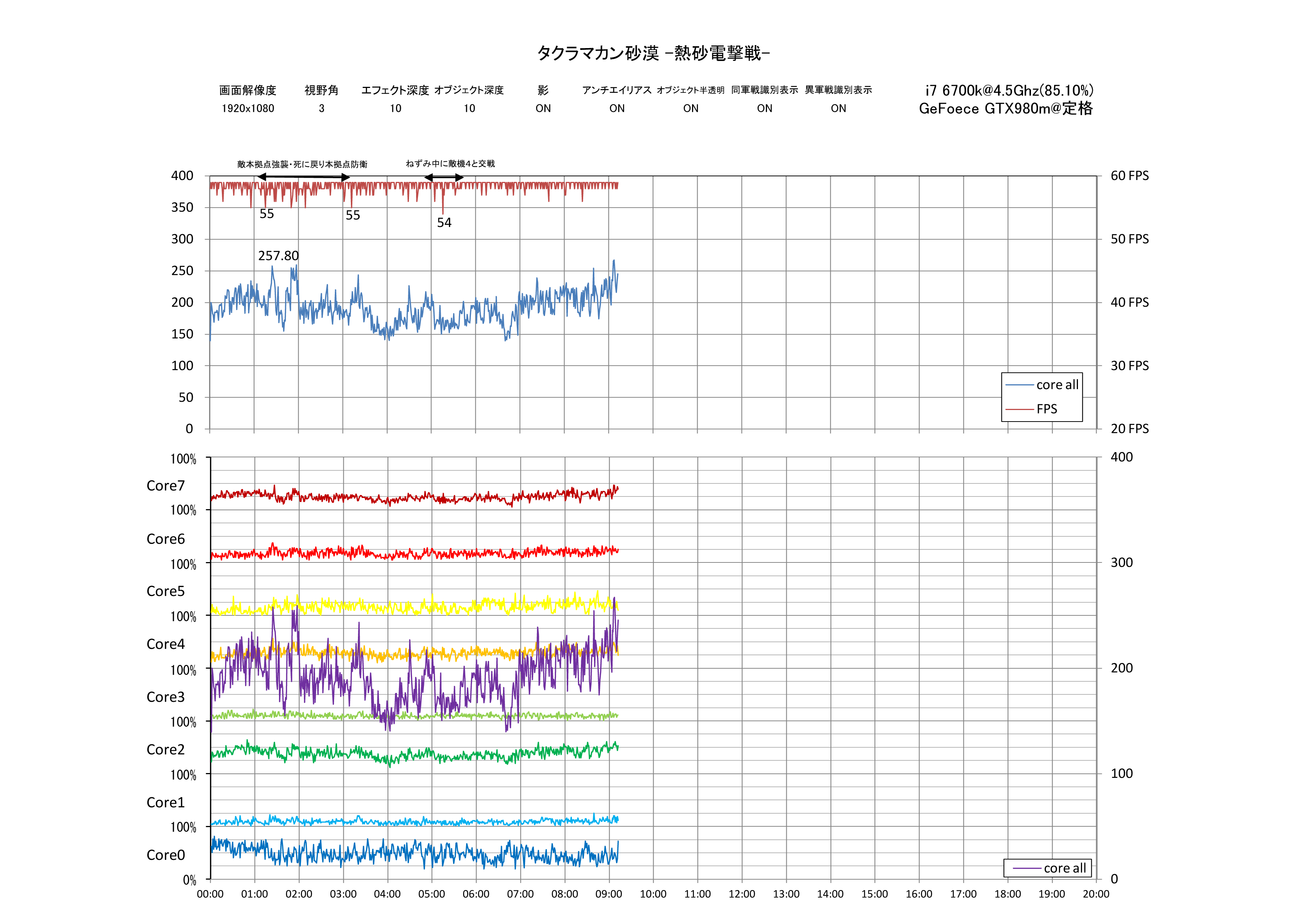 見易くならない・・・敵本拠点強襲中のCPUピークとFPSの落ち込みが少しズレているのは、サンプリングレートが1秒だからか?