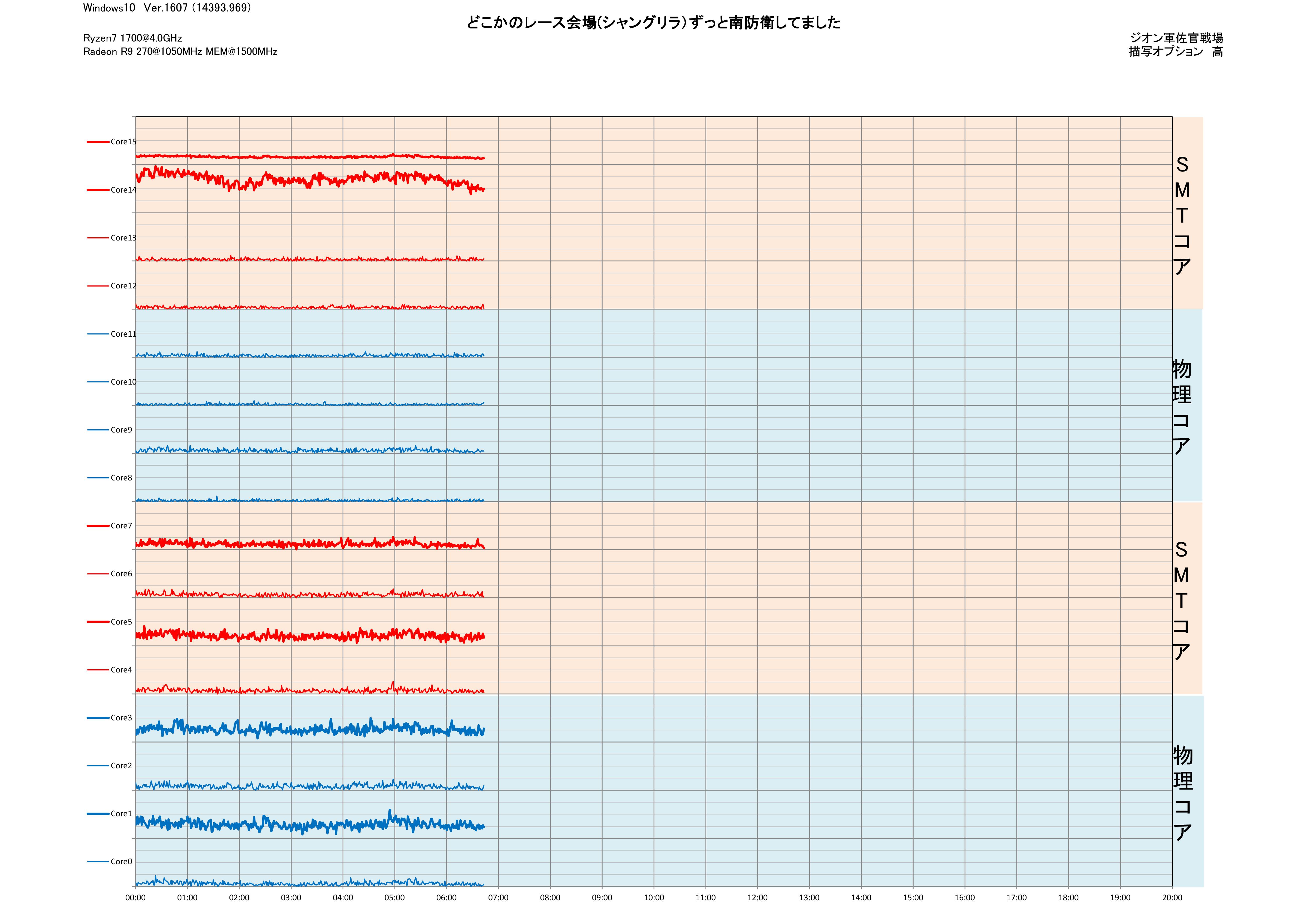 何でだろう、聞いてたコアの挙動と違う・・・Win10さんのコア認識の違いか・・・