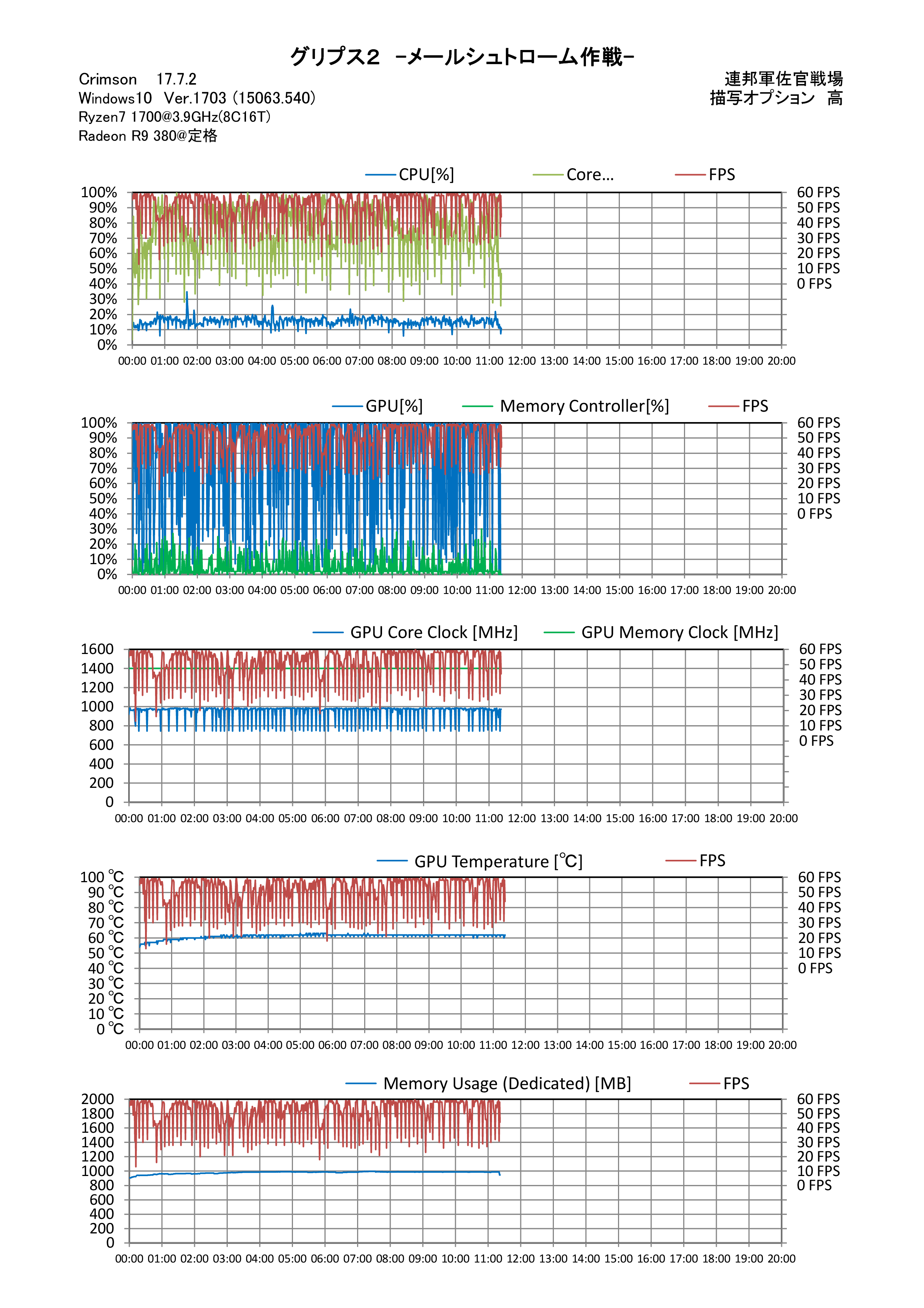 GPUのクロックが上限に張り付いていない。FPSも近いタイミングで下降しているが、リンクしていない。