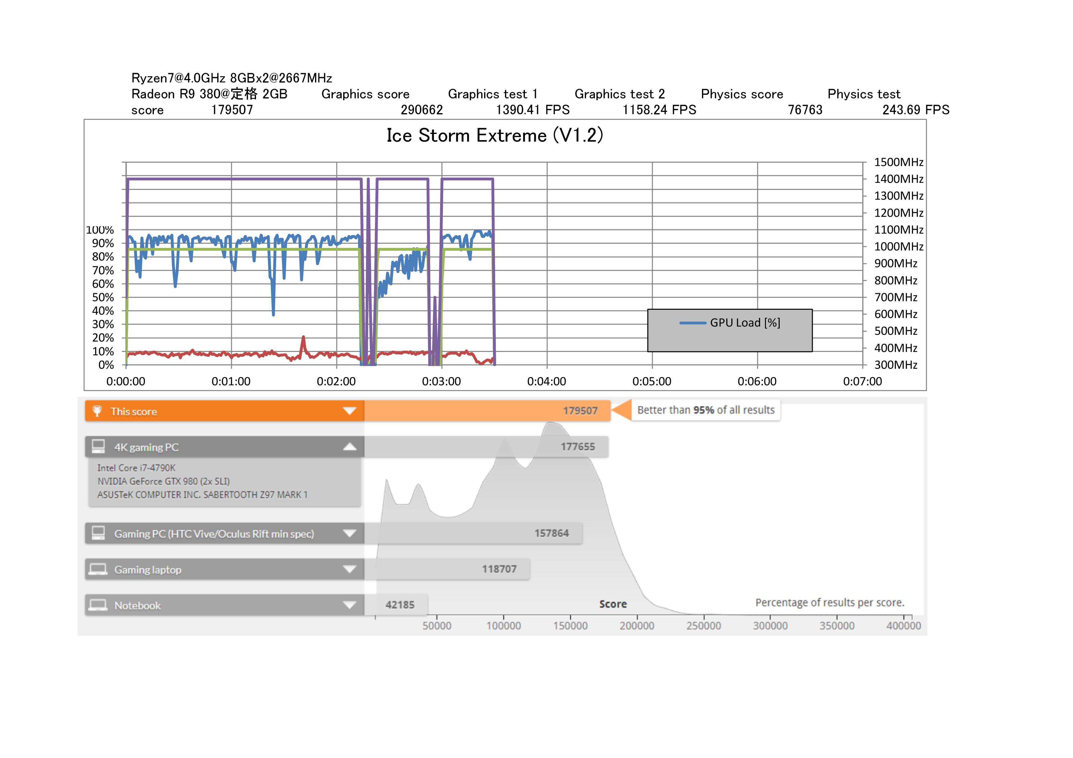 デモとベンチの間のデータ消せばよかったかな?R9 380って一つ下のスコア構成・・・4790kが足を引っ張ってるんだろうか?この子こんなに強い子だったのか。