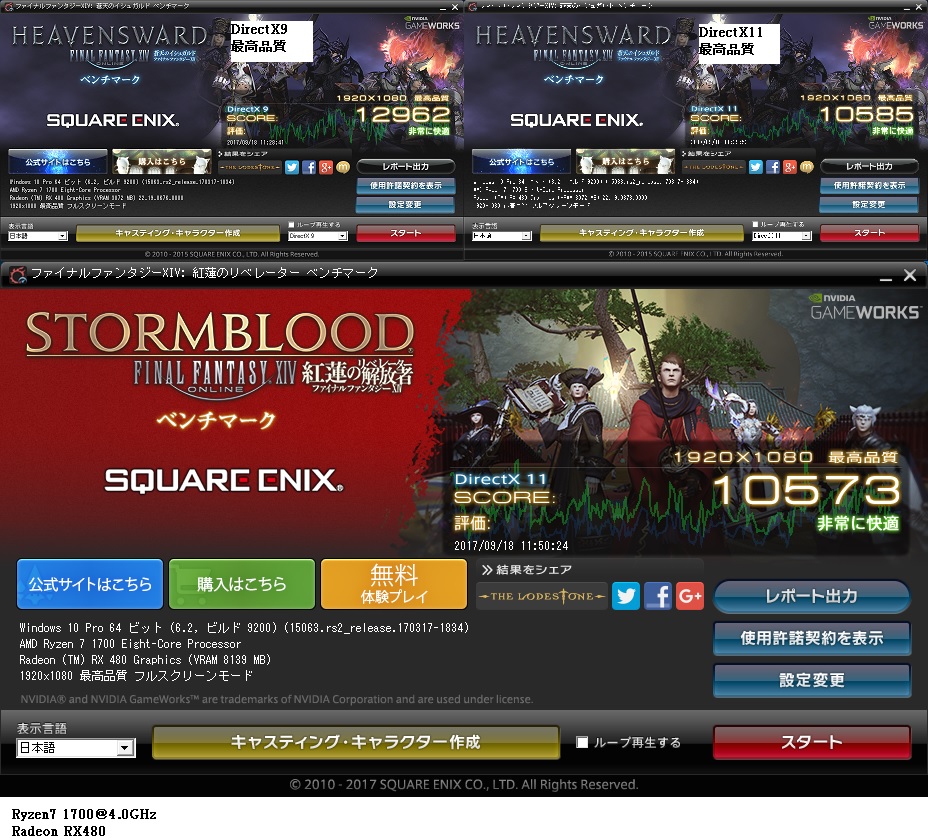 Ryzen7 1700を4GHzへOCした時のFFベンチスコア