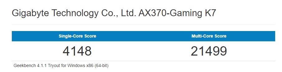 Geekbench4のCPUテスト結果です。「Ryzen7 1700@4.0GHz DDR4-2666 8GBx2」