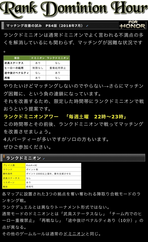 今週もあります!ランクドミニオンアワー!7/29 22時~23時開催。よろしくお願いします。また先日のWarrior's Den(開発者放送)でシーズン7開始時にランクドミニオンの一時削除が発表されています。そのためランクドミニオンアワーも今回で一時休止となる予定です。
