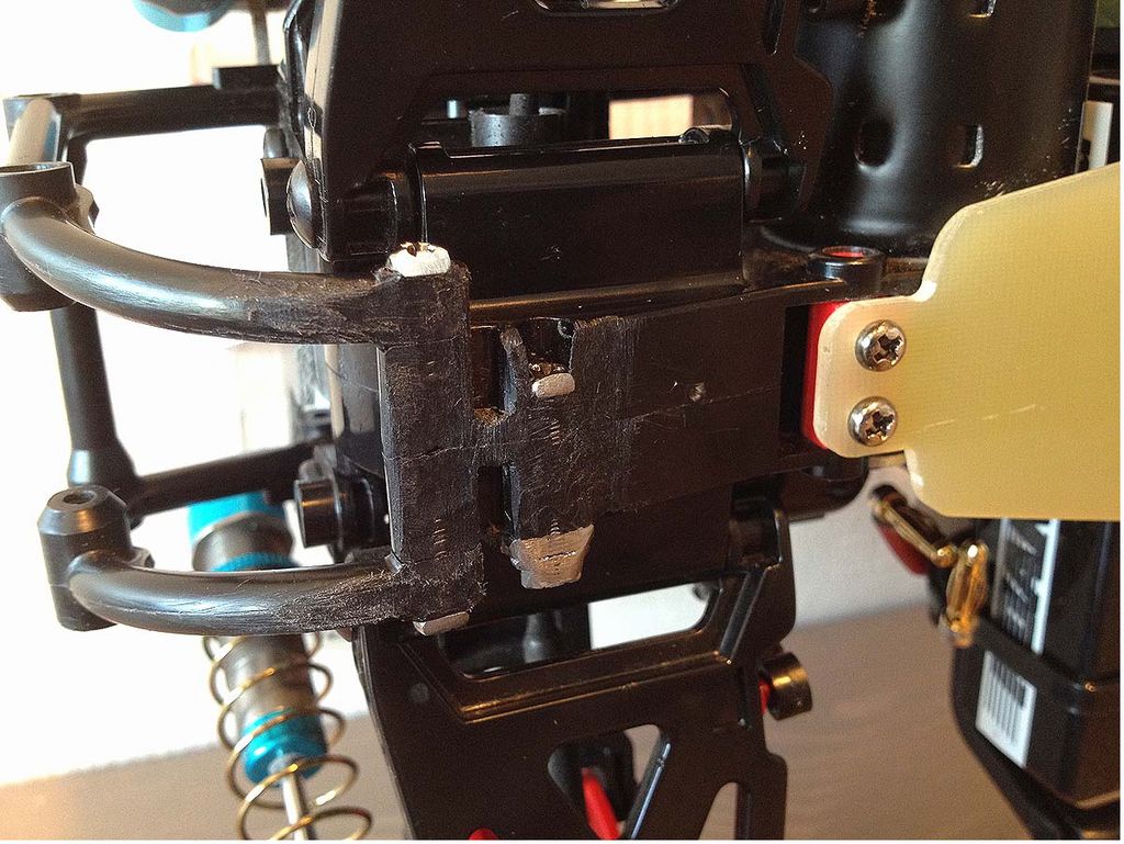 リアギアボックス下部の凸をビスが見えるギリギリまで削りこんで車高を稼いでいます