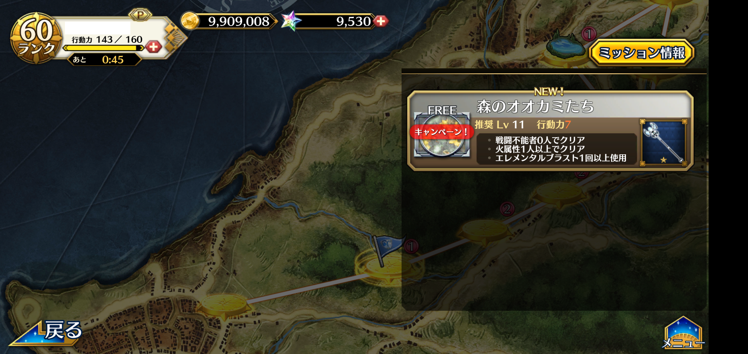 推奨Lv:11 行動力:15 ランク値:11 経験値:117
