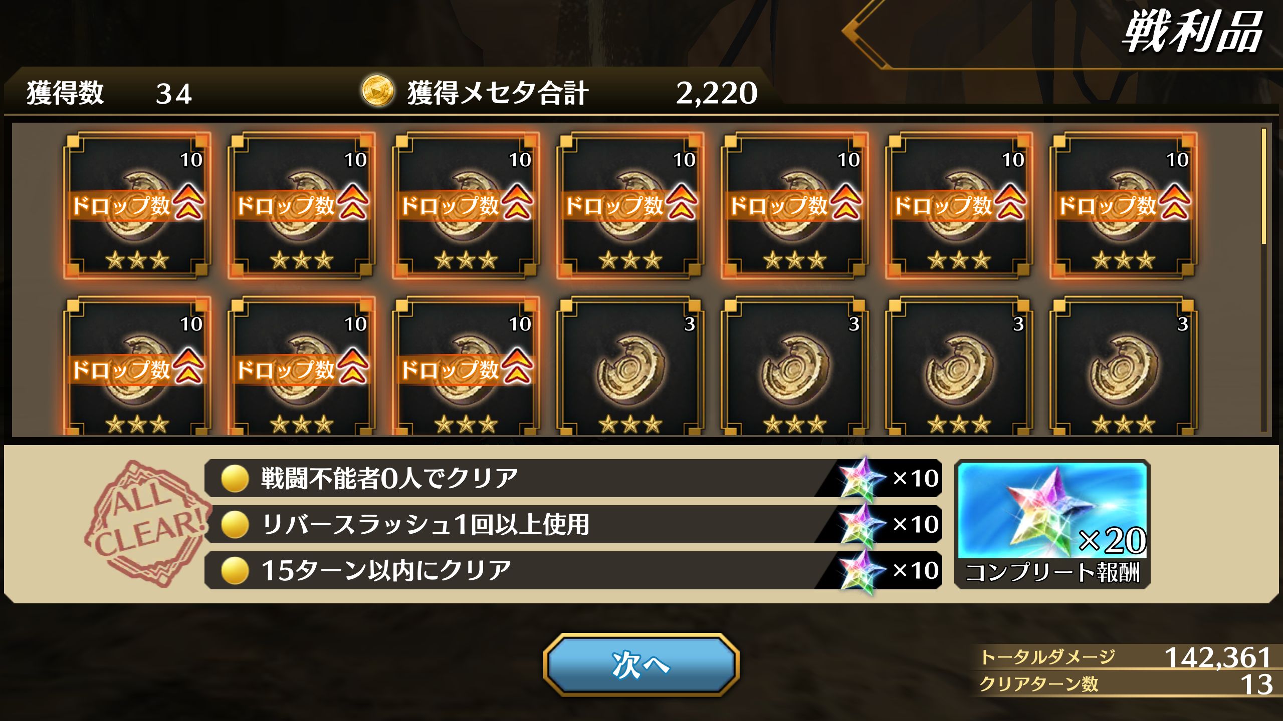 オートでよく見てなかったんだけど、多分超級で火属性ロックベア的なの2体出てきた時いっぱい貰えた気がする。