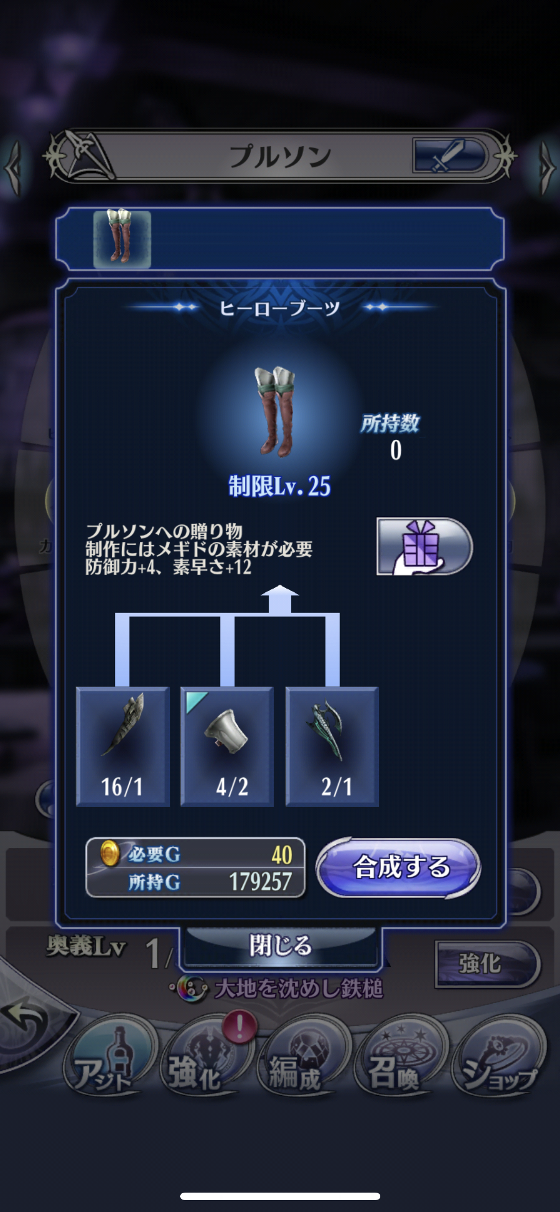 暗黒の足、聖獣のプレート(ウァプラ素材)、大蛇の尻尾