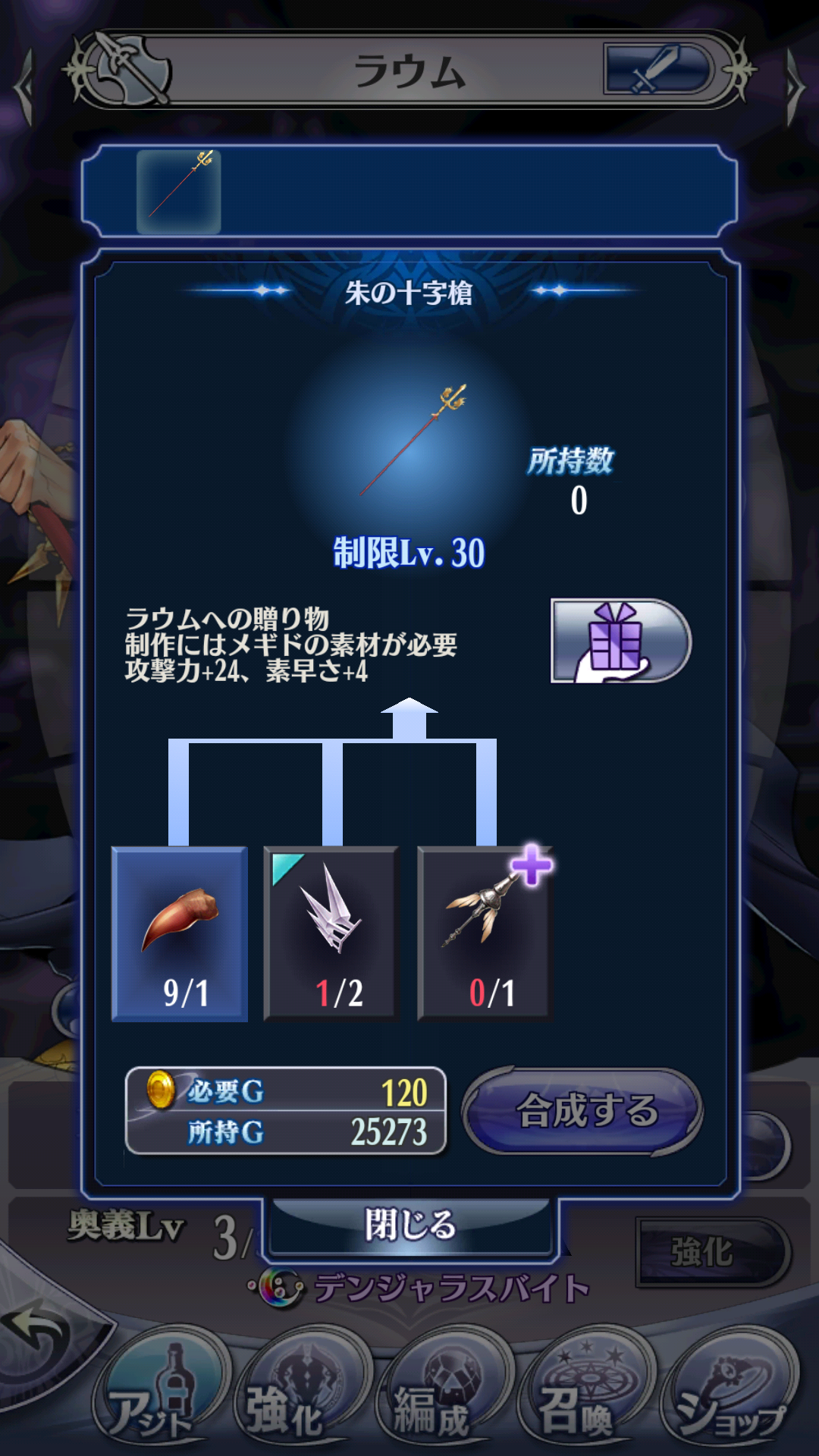 ラウム ☆4→4.5固有 朱の十字槍