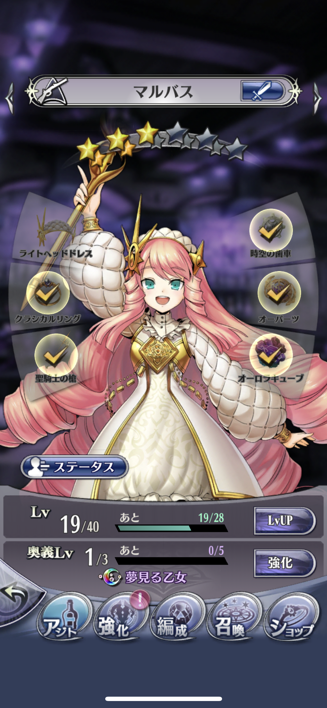 ライトヘッドドレス、クラシカルリング、聖騎士の槍、時空の歯車、オーパーツ、オーロラキューブ