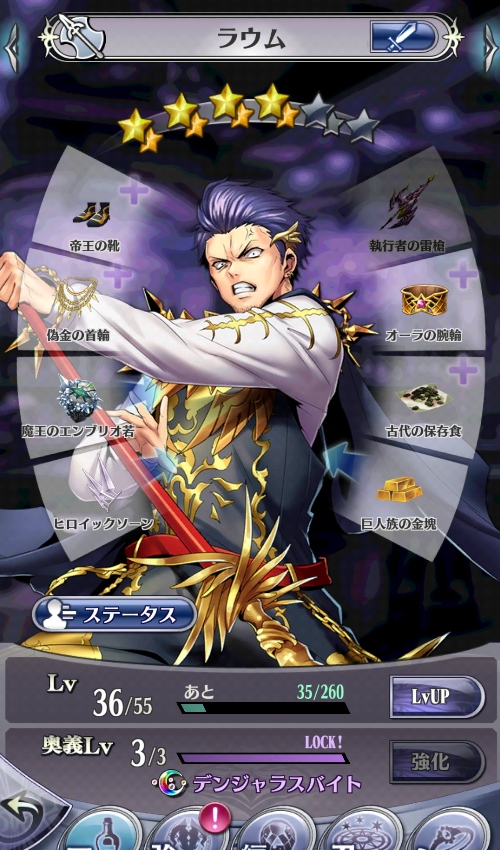 帝王の靴・偽金の首輪・魔王のエンブリオ若・ヒロイックソーン(シトリー)・執行者の雷槍・オーラの腕輪・古代の保存食・巨人族の金塊