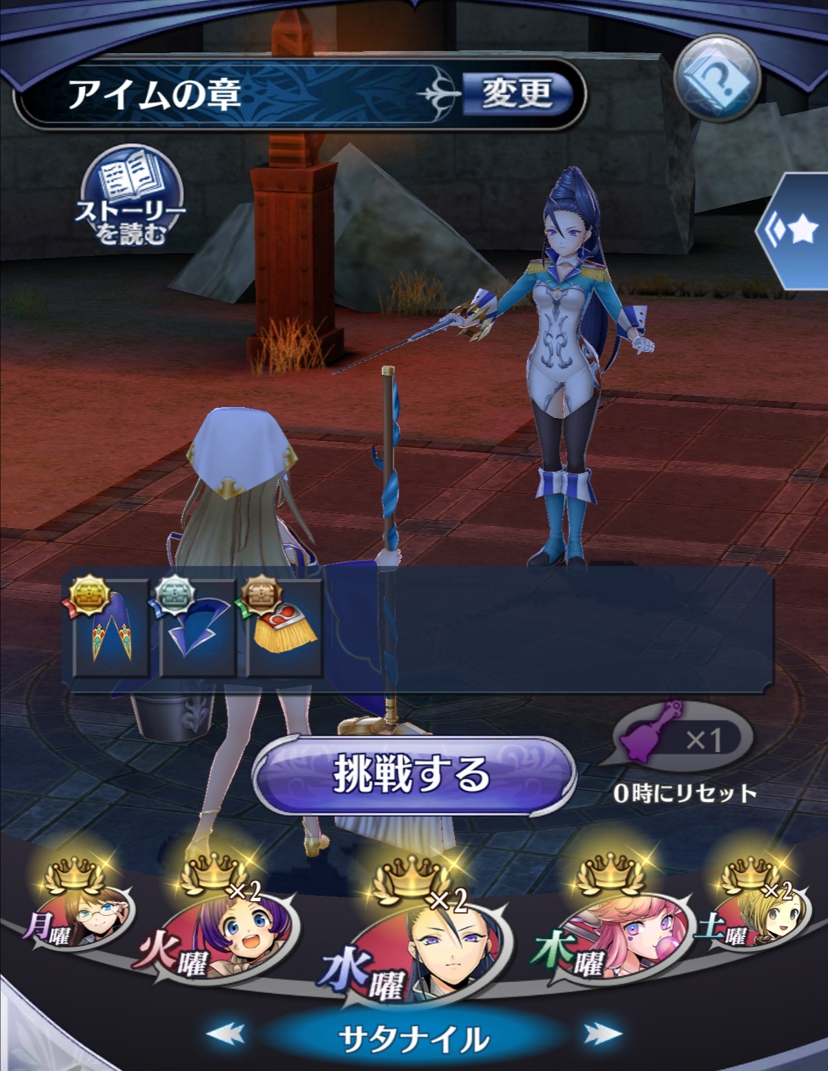 月曜:アスタロト(バースト) 火曜:ハーゲンティ(バースト) 水曜:サタナイル 木曜:サキュバス(バースト) 土曜:グシオン(バースト)