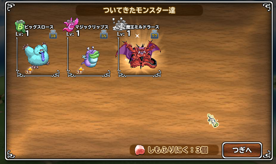 2個ヒドラ名前だけ 3個魔ミルド名前だけ 2個何もなし 3個魔ミルドげっと 本日の探検終了!5時~9時ころによくSSが当たる