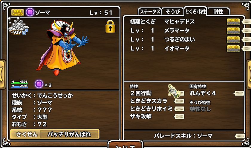 当方もゾーマ大好きで、こんな感じで育成中。(後衛やらせてます)(^_^)v