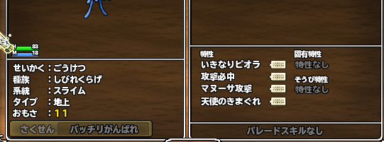 最初はうとねがのつもりで育て始めたこの子だけど、なぜかこんなことに。 特技もまだ覚えさせてないけど、どういう使い方すれば輝けるんだろう。 やっぱりBSかな?