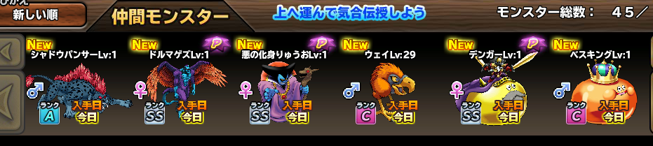 1個投げて鈴x12回。デンガーが4体目になってうれしい! ドルマゲスとりゅうおう、どう使おう・・・