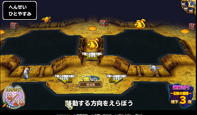 3階の金部屋画像です。名前の通り部屋全体が金色で、モンスターはバトスタ上位入賞景品の金銀銅モンス(倒すと通常のモンスになります)宝箱が6~8個位あります。通常のドロップ(5個)もありますので取り漏れ注意です。ちなみにこの金部屋、今週の木曜日に出たものですが、宝箱の中身はD紋2個、銀券1枚、銅券1枚、秘宝2個、ジュエル1個とハズレ金部屋でしたよ。