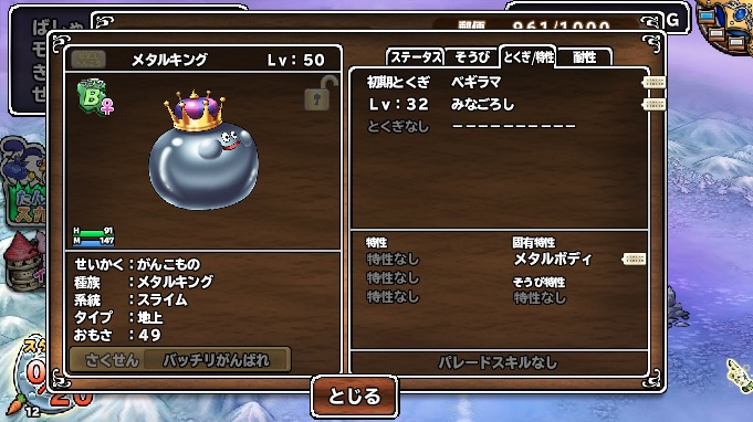本日スカウトしたメタキン。お、おまえは、メタル種族として、なにを学んできたんだあぁぁっと思った。みなころしって。 (T-T