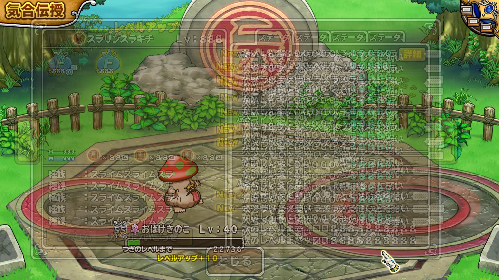 普通に伝授してたら初めてのバグに遭遇しました。この画面のままキノコだけは動いてますが操作不能なのでF5しました。怖い (^^;