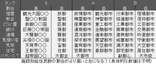 ランキングで5000位までざっと見てB級以上の都市名と施設などの関連性を調べてみました。