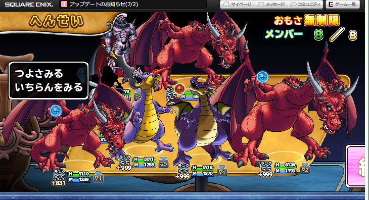 少し前に、迷宮3階でプラス値999が沢山出たと書き込み、干された方居たけど、本日はドラゴン+999祭りでした。手持ちは+831でその他は3階でのスカウトです。+999竜神王には手持ち以外殲滅されました。宝箱空けでの一筆パレードでの出来事でした。