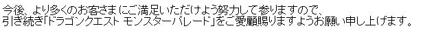 お問合せ出したところ、返信をいただきました。 内容としては、今後お知らせで告知するとのこと。 それはそれでいいけど、メール本文(テンプレ)で気になることが。 ・・・マジでかぁ (..;