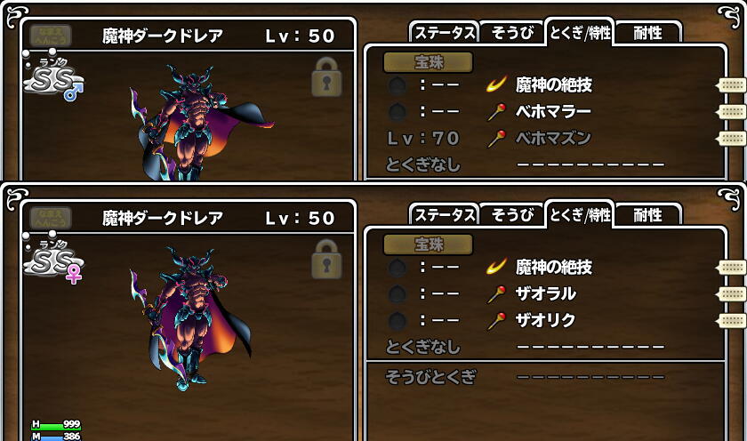 今朝来てくれたNewドレアム2体、2体とも特技を見たらサポ決定かな。パレスキの事もあるし配合してサポ・・・だよなぁ・・・もったいないけど (^^;