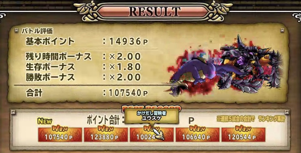 とうとう10万ptを5戦連続記録できるまでやってきた。思えば遠くへきたもんだ。かいしんあげの成果もあるけれど、仲間のコンビネーションに尽きると実感する。 つらかったり、ムカつくこともあるけれどやっぱり面白いよ、モンパレ最高だ、ありがとう!