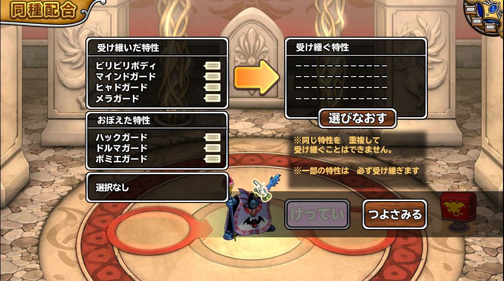 何か個体によっては配合の時にやたらと○○ガードばかり来るな。どうせまたガードが来るんだろうと赤タマゴ使ったビリボ以外ガードしか来たことのない邪神官、やっぱり3つともガード(しかもプラスすら無し)で笑うわw