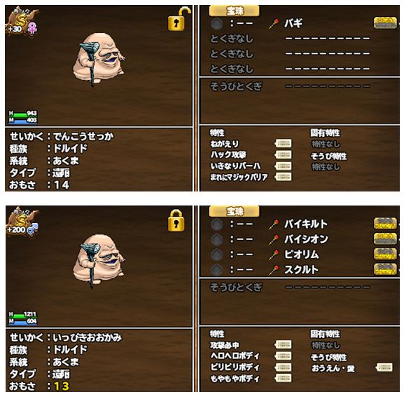 この子たち配合したら、必中うとねが ハック攻撃(ついでに武器持たせたら マヒ・眠りも・・・)がつくれるけど、大防御でヘロヘロ・ビリビリ・もやもやも捨てがたい・・・。 まぁどうせBS専用機なんだけど。
