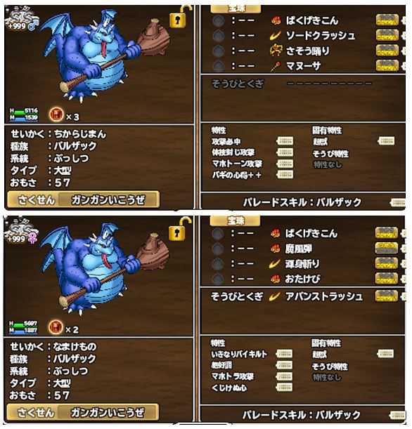 うちも、おめおめとサポなどになるものかという意気込みを感じてる。 必中くんは、SP MVPでソードクラッシュを覚え、いきバイ・絶好調ちゃんは、渾身斬りを覚えるという・・・。 どうするの、これ状態。