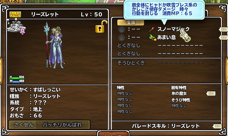 リーズ来た (^-^ スノーマジック かしこさ依存ダメージ 消費MP65