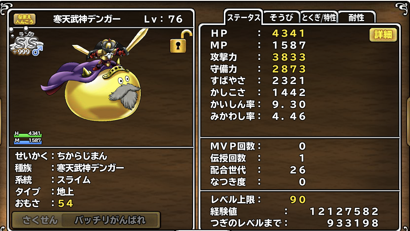 寒天デンガー来たので手持ちのデンガーと配合してみた。力自慢で攻撃力3833だから豪傑ならカンストですね