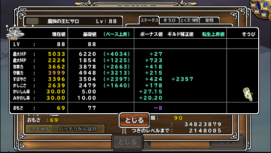 早朝、魔界の王ピサロ引いて手持ちのタフガイピサロと配合したと書き込みした者です。ステ載せときますね。