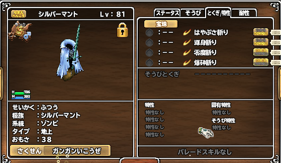 うちにも、そのとき偶然取れたシルバーマントがいるんだけど、無駄に良いとくぎかたくさんついているから移植しづらくて倉庫に眠ってる。 (^^;