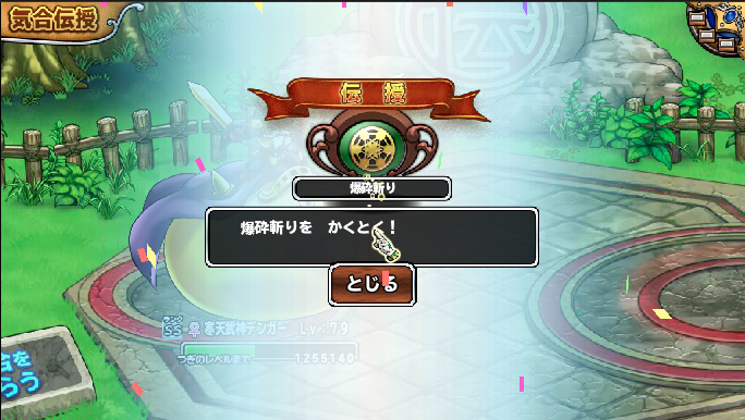自分のような中級者には、爆砕斬りがこんなにたくさん取れるだけで大満足。破壊神に超扇伝授、スライムナイトに同種配合、そしてこないだ取れた寒天に扇ギャンブルで成功。ひとりニヤニヤしてる。楽しい♪ (^-^