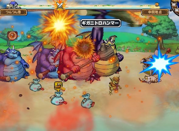 ギガトロハンマーのエフェクトこんな感じでした。 エフェクトにあまり時間使わず、交易で長宝しそうです。 あと、タイミングを合わせるのが難しくて、うまく撮れずですみませぬ。ギガデーモン(ふつうの女の子)のLvが低くて宿屋に泊っても一発しか撃てないのが痛い。